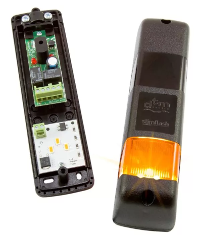 SLIMFLASH este alegerea perfectă dacă o lampă LED nu poate fi instalată din motive tehnice sau estetice. Sau o obțiune dacă nu doriți să montați clasica lampă LED deasupra porții. Setul fotocelule SLIMFLASH este o combinație între fotocelule și o semnalizare LED strălucitoare la poartă.